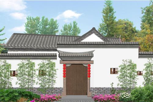 頂將紅瓦改換成黑瓦,圍墻上增加窗洞,用木格柵修飾,提升民居內部空間的通透性修繕大門,增加大門上方門頭,采用仿古做法。